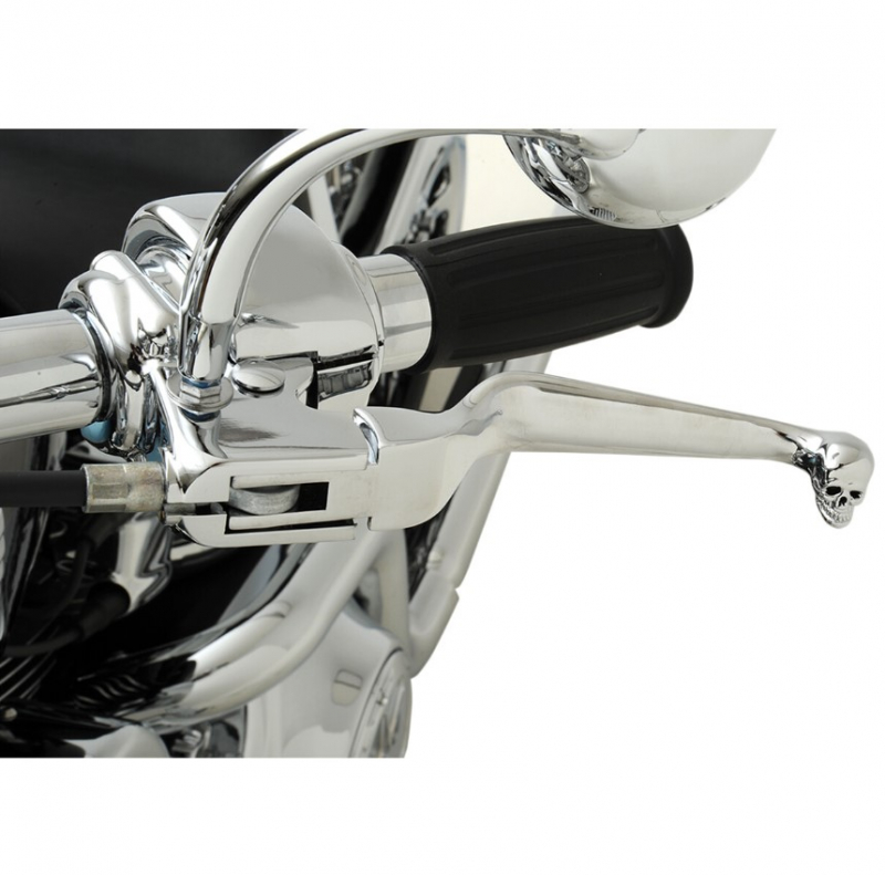 - Lightweight chrome aluminum levers feature detailed skulls on the lever ends